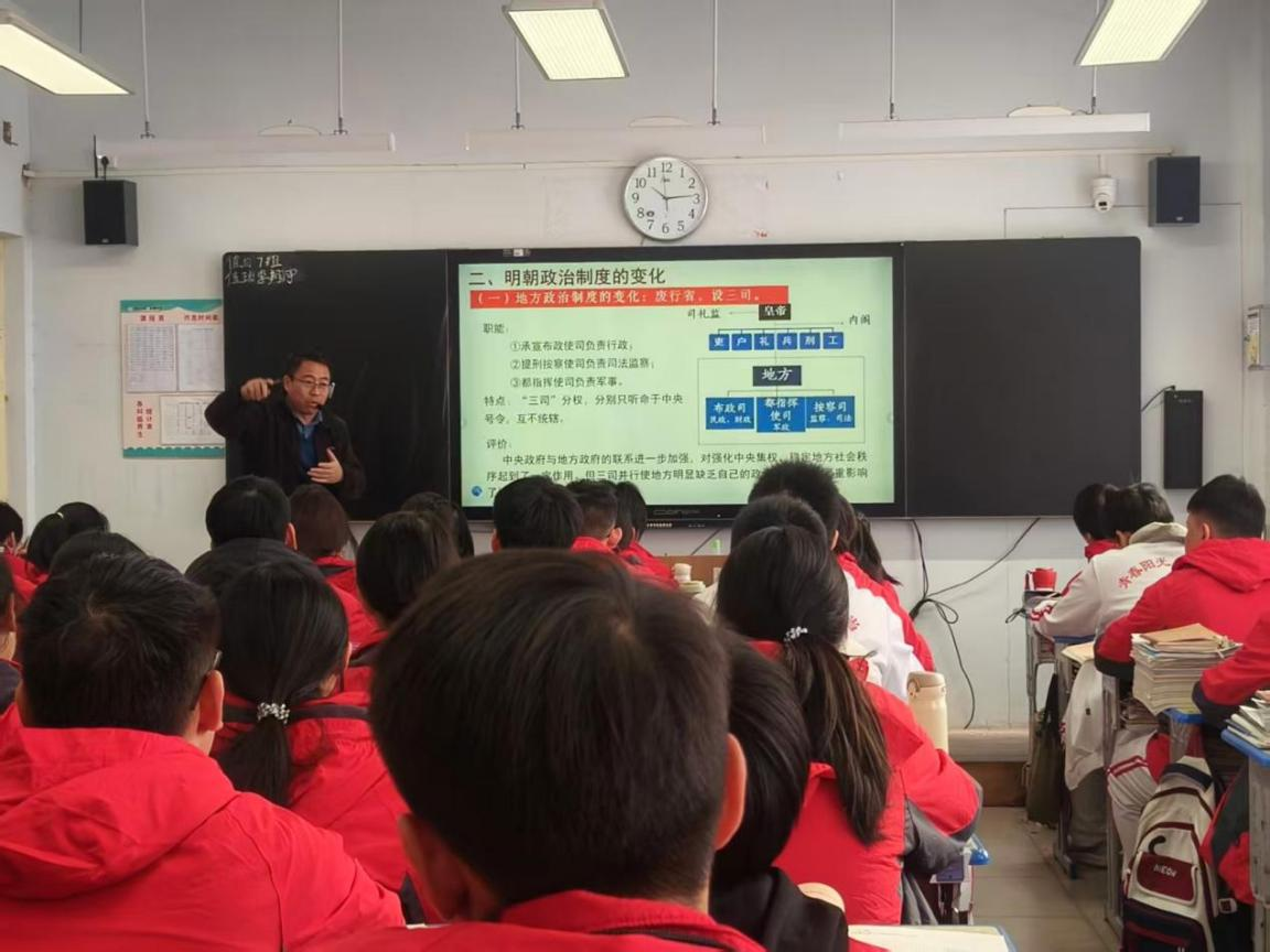 活动中,坊员们观摩了赵华老师主讲的《明朝建立与清军入关》一课。课堂上,赵老师串联明朝建立、中央集权强化、郑和下西洋等内容,巧用史料、图表让教学内容更直观生动。赵老师授课节奏适中,精准传递知识点,呈现了一节优秀的示范课。