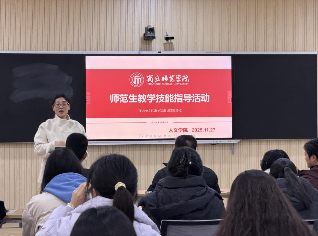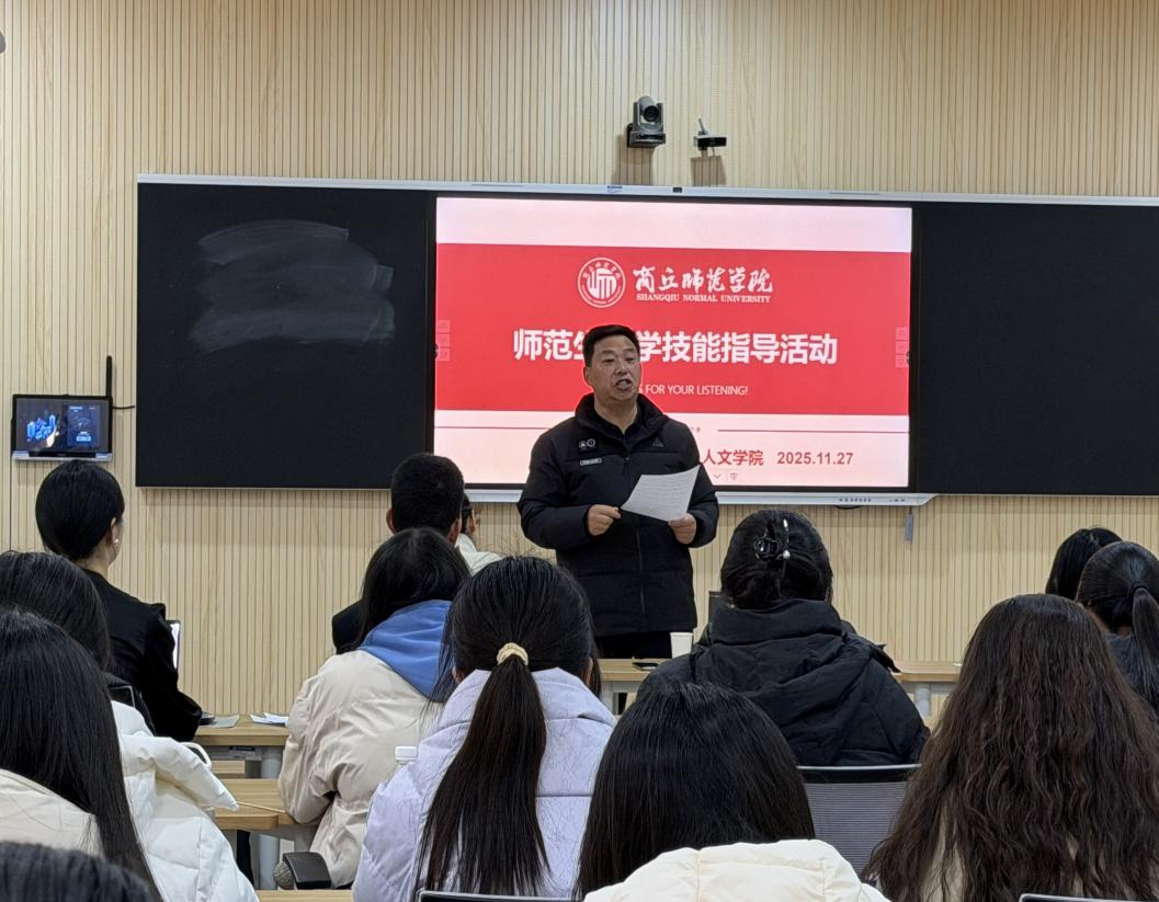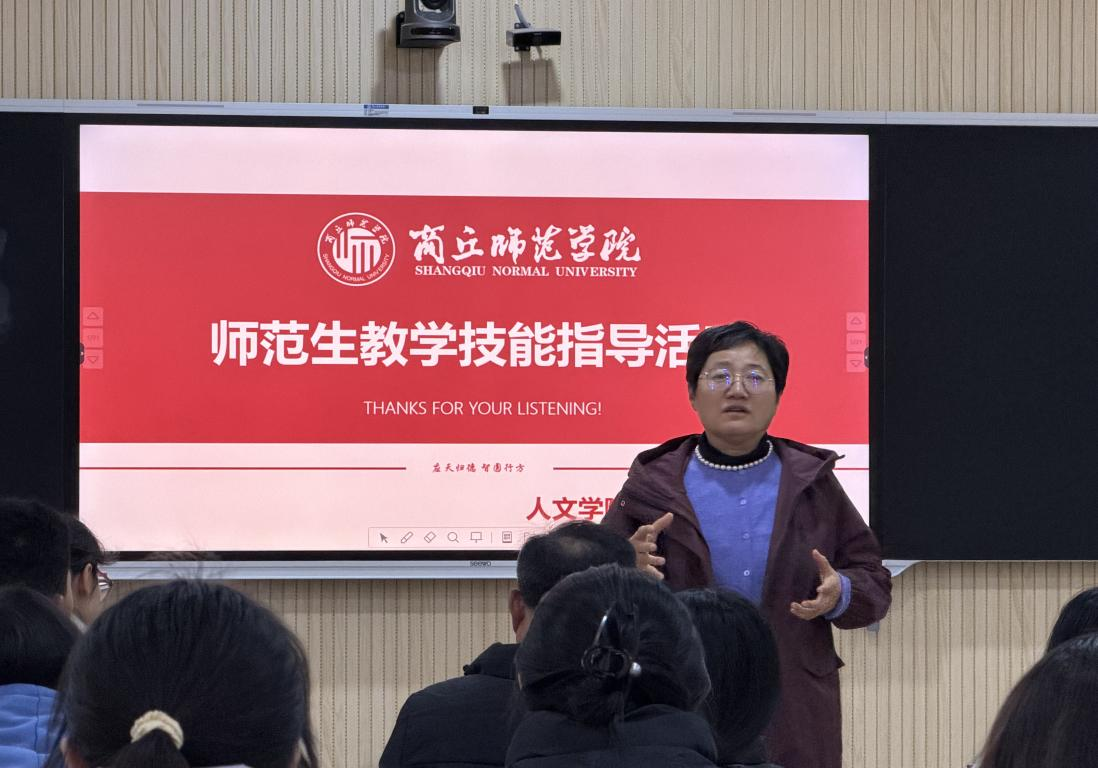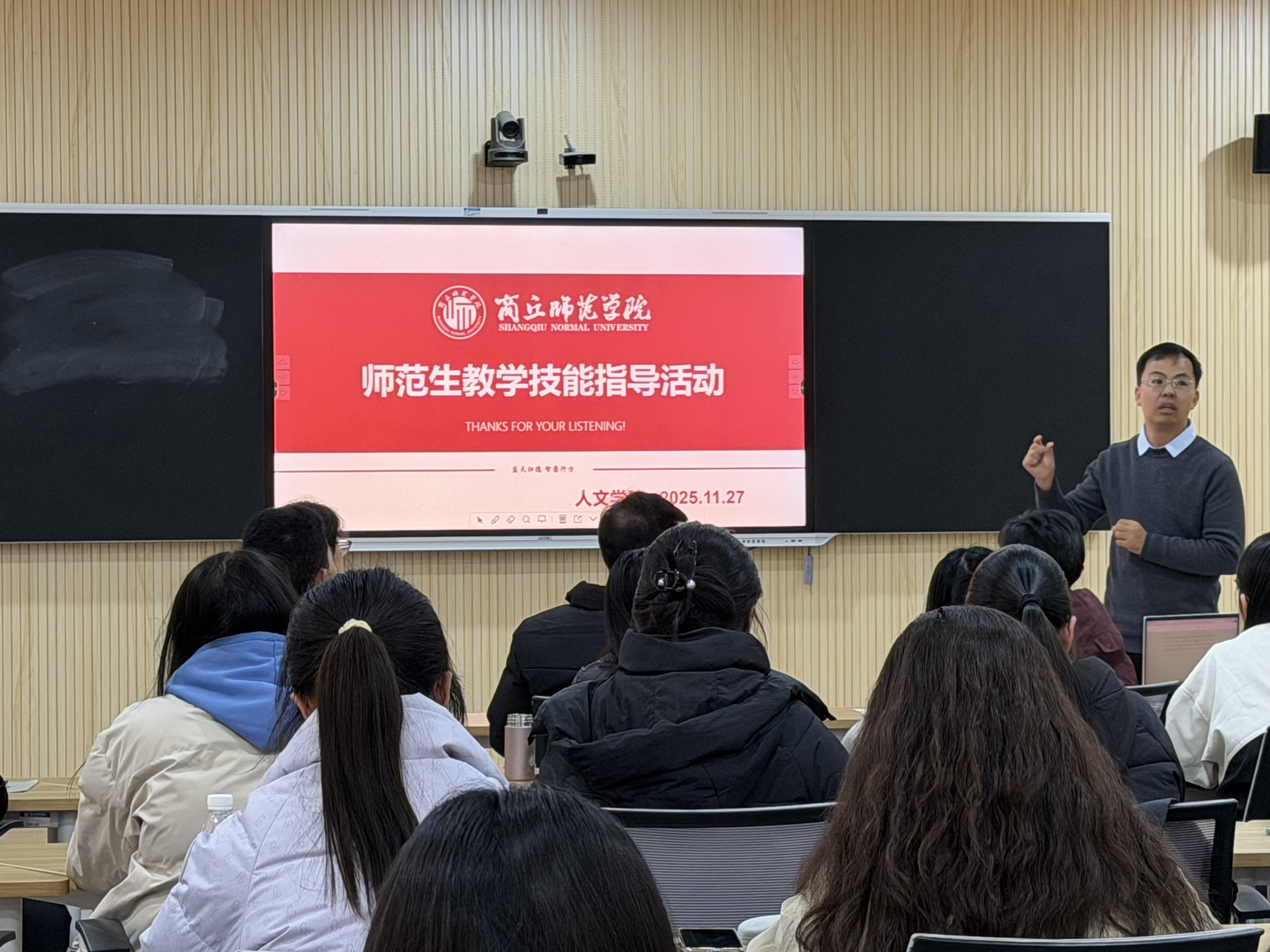 为切实提升师范生教学实践能力,夯实专业素养,11月27日下午,商丘师范学院人文学院在汉梁楼105教室成功举办师范生教学技能指导活动。本次活动特邀华南师范大学周小蓬教授、周口师范学院胡进才教授、华南师范大学张照洋博士莅临指导。活动由邹琨老师主持。