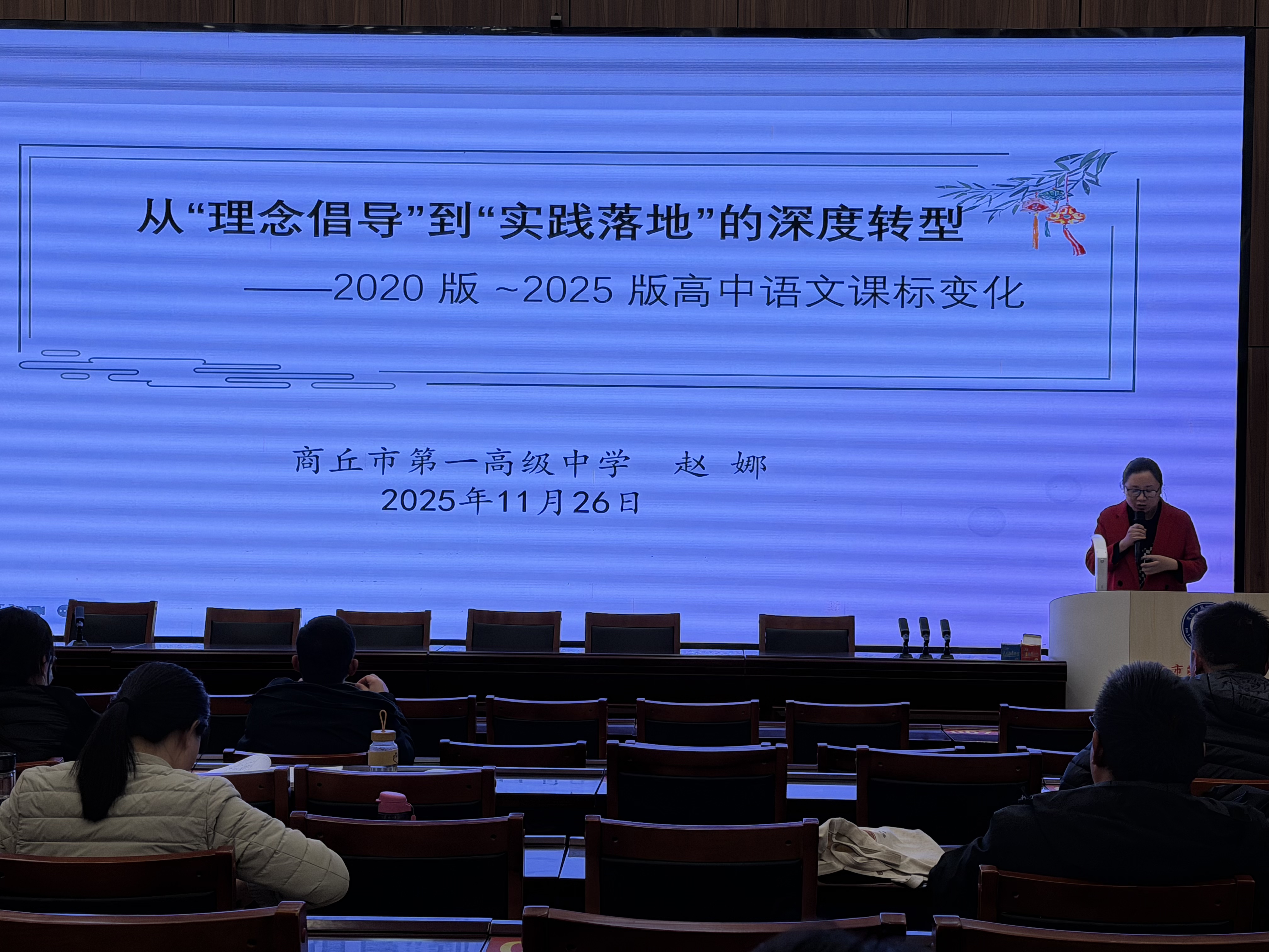 商丘市第一高级中学赵娜老师以《从“理念倡导”到“实践落地”的深度转型》为题,从课程性质与理念、学科核心素养、学业质量与评价、学习任务群、教学建议五个维度,详细解读课标调整要点,并重点阐释了新课标与高考备考的紧密衔接,为师范生搭建起“课标理念—课堂实践—高考导向”的认知桥梁。