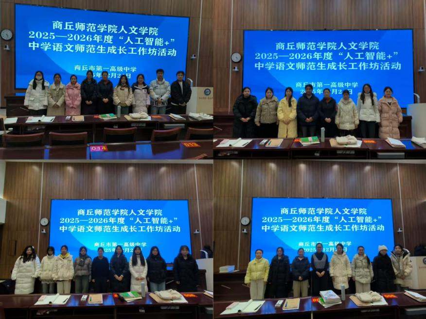 为进一步深化师范生对中学语文课堂的理解,12月24日下午,人文学院“人工智能+”中学语文师范生成长工作坊第一至四坊成员在各坊主的组织下,前往商丘市第一高级中学,观摩语文学科大教研活动暨新入职教师微型课大赛。
