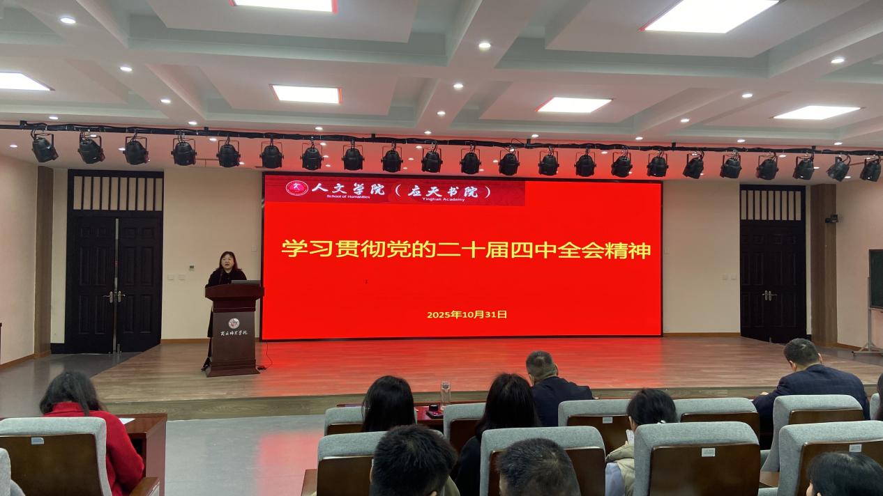 10月31日下午,人文学院在汉梁楼125会议室召开专题会议,集中学习贯彻党的二十届四中全会精神。学院全体教职工参加学习,会议由学院党委书记陈晓明主持。