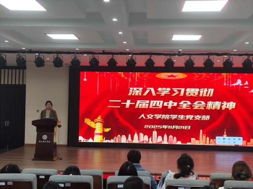 为深入学习贯彻党的二十届四中全会精神,切实提升政治站位,充分发挥党员先锋模范作用,11月21日中午,人文学院学生党支部于汉梁楼125教室开展了一场意义深刻的“学习贯彻党的二十届四中全会精神”主题党日活动,全体学生党员踊跃参与,活动由学生支部书记王超、张夏楠共同主持。