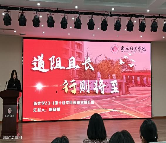 参赛班级以PPT为窗,尽显人文学子风采:历史学23-1班凭“三零三满”(0投诉、0违纪、0事故,自习、作业、及格率100%)学风根基;历史学23-3班以“早晚自习+新生帮扶”机制护航成长,98%普通话二甲通过率与赛事佳绩双线出彩;汉语言文学23-1班用17人次国家级荣誉、超200项证书,书写学霸班级答卷;23级汉语言文学5班以“笃志博文”为魂,借字句品析与实践活动凝聚班级力量;文化产业管理23-1班以学风公约为纲,100%志愿参与率与文旅调研、非遗文创设计,彰显专业实践担当。