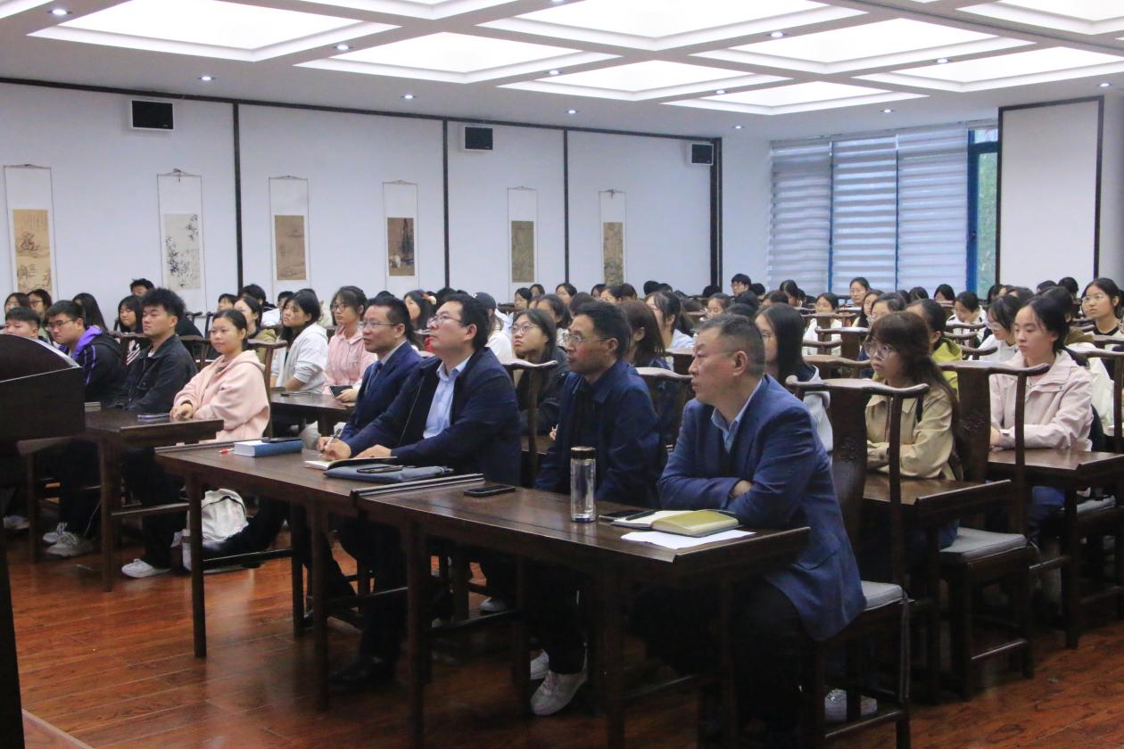 踪训国教授的讲座高屋建瓴、深入浅出,生动地揭示了一位文学巨匠司马相如的人生与其汉赋作品,在场同学认真听讲并记录。最后,本次讲座在热烈的掌声中结束,引发了热烈反响。