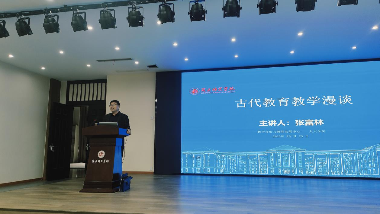 为帮助2025级新生激发学习兴趣和内在动力,进一步了解中华优秀传统文化的博大精深和独特魅力,10月23日上午,教学评价与教师发展中心联合人文学院开展了“古代教育教学漫谈”主题讲座,特邀张富林老师主讲。讲座由汉语言文学系主任刘海洲主持。