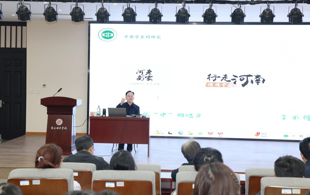 为深化学术交流,凝聚合力,推动学校高质量发展,12月6日,河南省社会科学界联合会党组书记、主席李庚香莅临我校,以“努力做中国学术的创造者、世界学术的贡献者”为主题,在汉梁楼125多功能演播厅作题为“论中原学的基本理论、基本问题与基本方法”的学术报告。报告由校党委书记张尚字主持,校领导、有关部门负责人及人文学院师生代表100余人参加报告会。