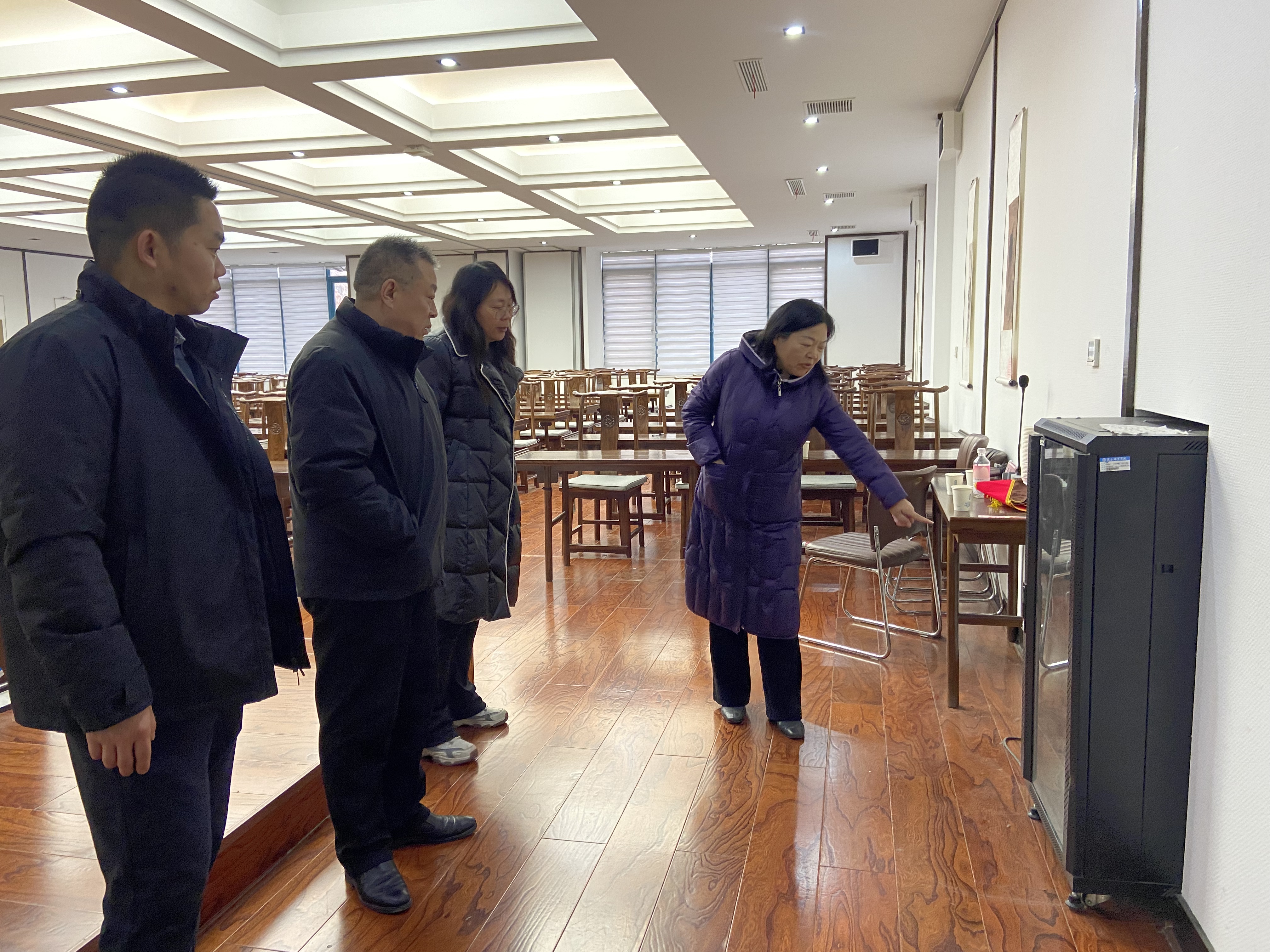 检查组一行先后对学院范围内的会议室、教师办公室、专业实训室、器材储存室等房间场所进行了逐一排查。检查过程中,重点围绕用电安全、消防设施、门窗锁闭以及环境卫生等关键环节展开。检查组细致查看了各房间的电源插座、电器设备使用情况,反复强调“人走电断”的重要性,并对可能存在的安全隐患进行了现场排查与记录,要求即知即改,确保不留死角、不留盲区。