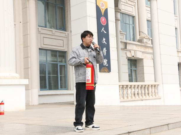为进一步加强校园消防安全教育,提高学生的应急处理能力与安全防护意识,3月12日,人文学院于汉梁楼南广场前开展了消防演练活动。活动由学院安全员王超老师主持,张夏楠老师、王嵩跃老师出席,人文学院全体学生有序参与。