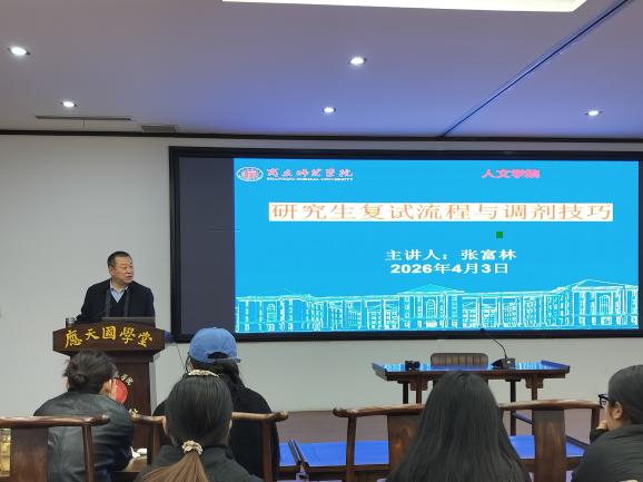 为帮助考研学子科学备战复试、精准把握调剂机遇,4月3日,人文学院在汉梁楼国学堂举办“研究生复试流程与调剂技巧”专题讲座。院长冯志伟,教师张巧玲、解远文出席,张富林老师担任主讲,人文学院2022级考研同学到场聆听。